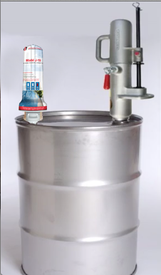 The steel threads allow you to screw it into any 20 to 55 gallon drum. The unit may also be directly attached to a work station and then be connected to a smaller container with a hose if a drum is too large.